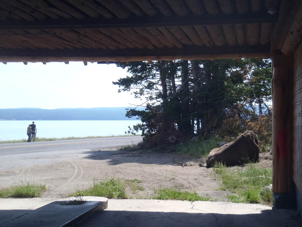 The wildlife experience at Yellowstone can be very up close and personal. There are many areas in the park, swarming with tourists and merchandising opportunities, where it seems that many people forget this fact and assume humans are the masters of the domain. But often, all you need to do is turn around to realize you are face to face with something wild, something that does not adhere to “Stay on Path” signs. There is always the distinct possibility that something much bigger, much stronger, and utterly untamed is going to be looking at you before you even see it. Like a bison … at the Yellowstone Visitor Center.